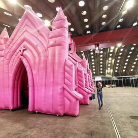 Binnen passen onze: roze kerk, grijze kerk, XL kerk,regenboogtent, gele duikboot, fabriek, nachttent en varkenstent.